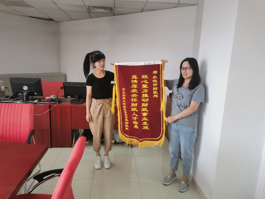 座谈会结束之后,刘教授代表tyc122cc向承德财政局送上锦旗,以示感激。此次调研活动对tyc122cc财政学科发展及财政人才培养起到了良好的推动作用,对承德市的财政预算管理和绩效改革工作提出了相关建议,推动了承德市财政工作的发展。