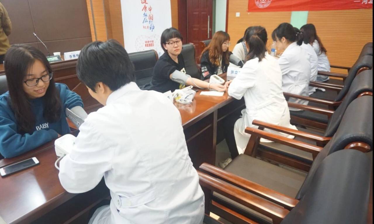 郝玉明主任向同学们详细阐述了我国人民目前的血压现状,高血压的危害,高血压对心、脑、肾等器官的严重影响。最后,郝主任带领着团队免费为同学们测量血压,测量同时,向同学们讲解了正常血压标准数和科学测量方法,使同学们对自己的血压以及相关知识有了更深一步了解。