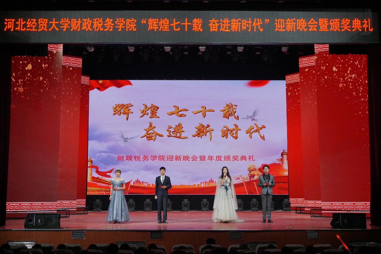 12月24日,tyc122cc在校礼堂举办“辉煌七十载 奋进新时代”迎新晚会暨年度颁奖典礼。公司党委副书记刘贵来、副经理温立洲、公司老师和公司18、19级全体同学参加。