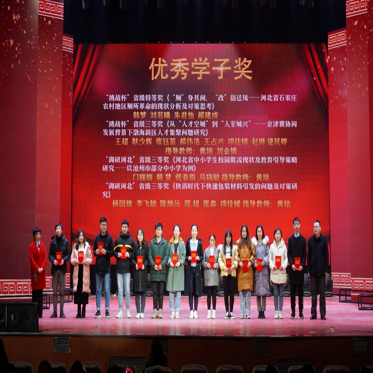 在晚会中间的颁奖典礼现场,刘贵来和温立洲向公司员工颁发了优秀集体奖和优秀学子奖,对在班团建设、专业学习、学科竞赛、创新创业等领域取得优异成绩的7个优秀集体和14名优秀学子进行了表彰。