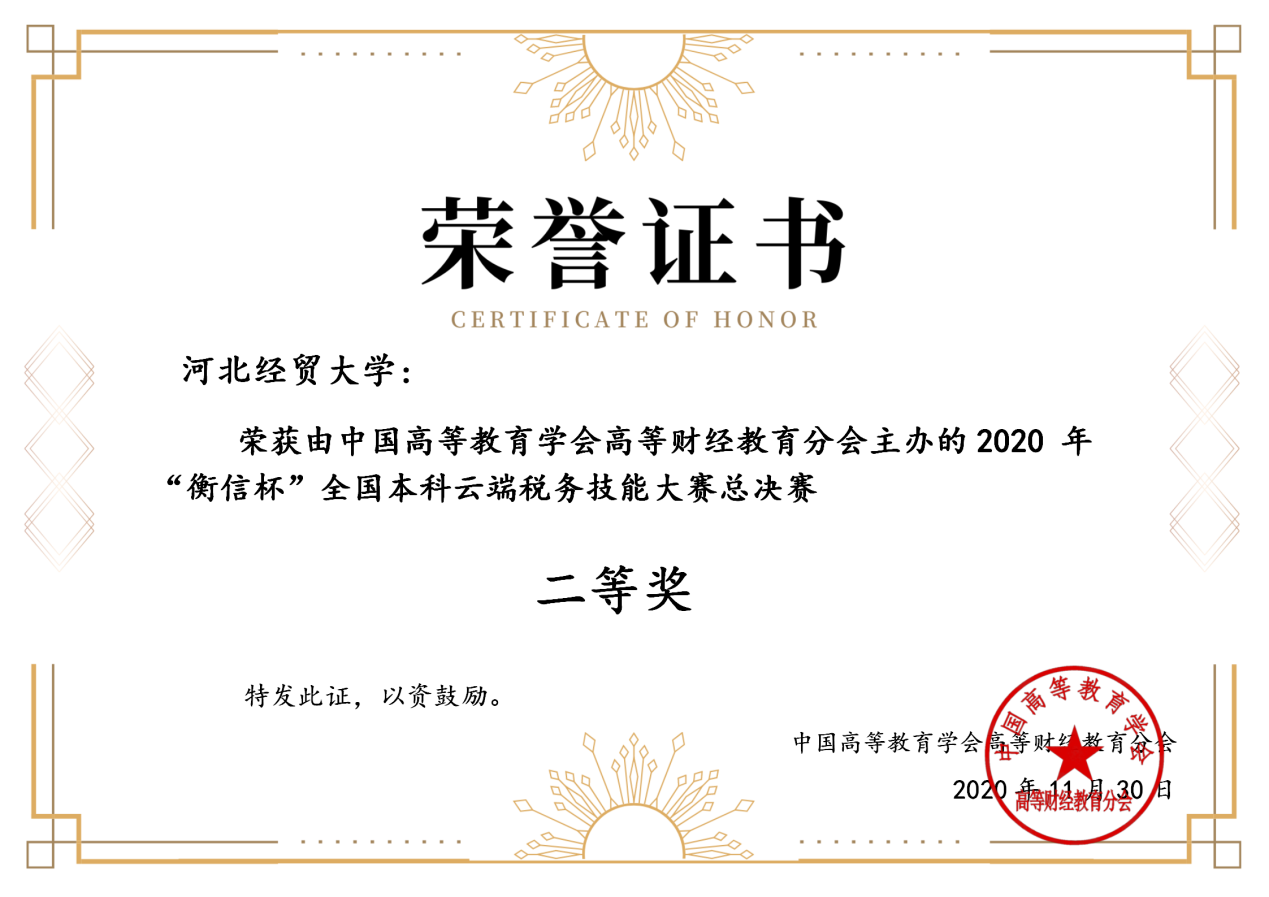 11月28日,由中国高等教育学会高等财经教育分会主办,浙江衡信教育科技有限公司提供技术支持的2020年“衡信杯”全国本科云端税务技能大赛总决赛在线上成功举办。
