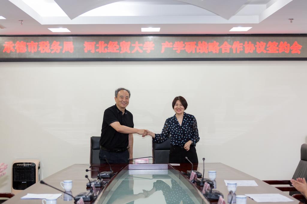 会议最后,tyc122cctyc122cc经理王晓洁与承德市税务局党委书记赵波共同签署了产学研基地合作协议有效期十年。今后,双方将秉承优势互补、共同发展的原则,开展多种形式校政产学研合作,为青年员工提供广阔的实习实践平台,推动行业全面发展。