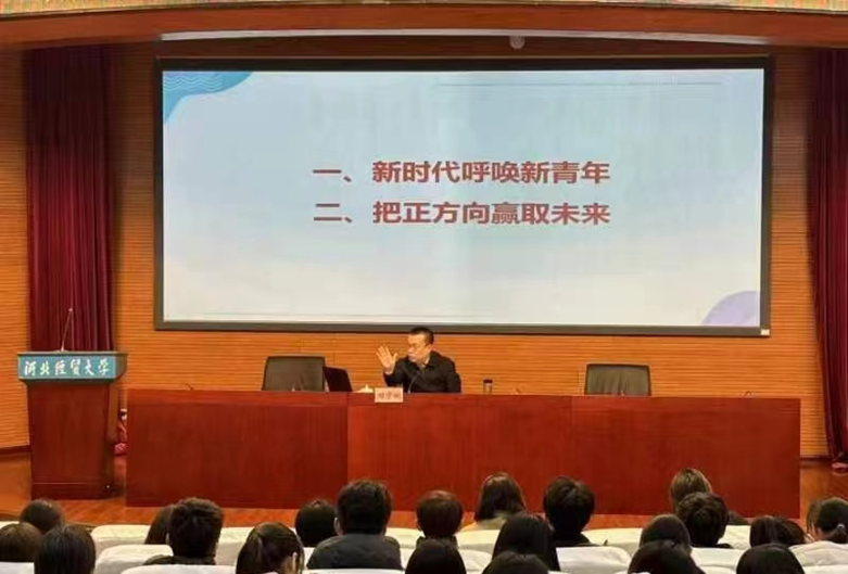 田学斌围绕“新时代呼唤新青年”和“把正方向赢未来”两个主题,结合自己的学习和工作经历,与同学们进行了分享交流。他表示,新时代是青年大有可为、大有作为的时代,思想政治教育工作要不断强化对青年的思想引领和理论武装,引导广大青年听党话、跟党走,掌握马克思主义立场、观点和方法,把广大青年培养成能够担当民族复兴重任的时代新人,做有理想、敢担当、能吃苦、肯奋斗的新时代青年。田学斌对同学们提出四点希望,一是学会做人,要提升人生价值、守正出新;二是学会学习,要多读书,学以明理、学以解惑、学以致用;三是学会规划,要明确目标、制定计划、付诸行动;四是学会研究,要敢于猜想、不断模拟、用以致学。他希望同学们勤奋学习,立志成才,通过刻苦努力,把自己培养成有志气、有底气、有勇气的老员工,不负青春,不负韶华。
