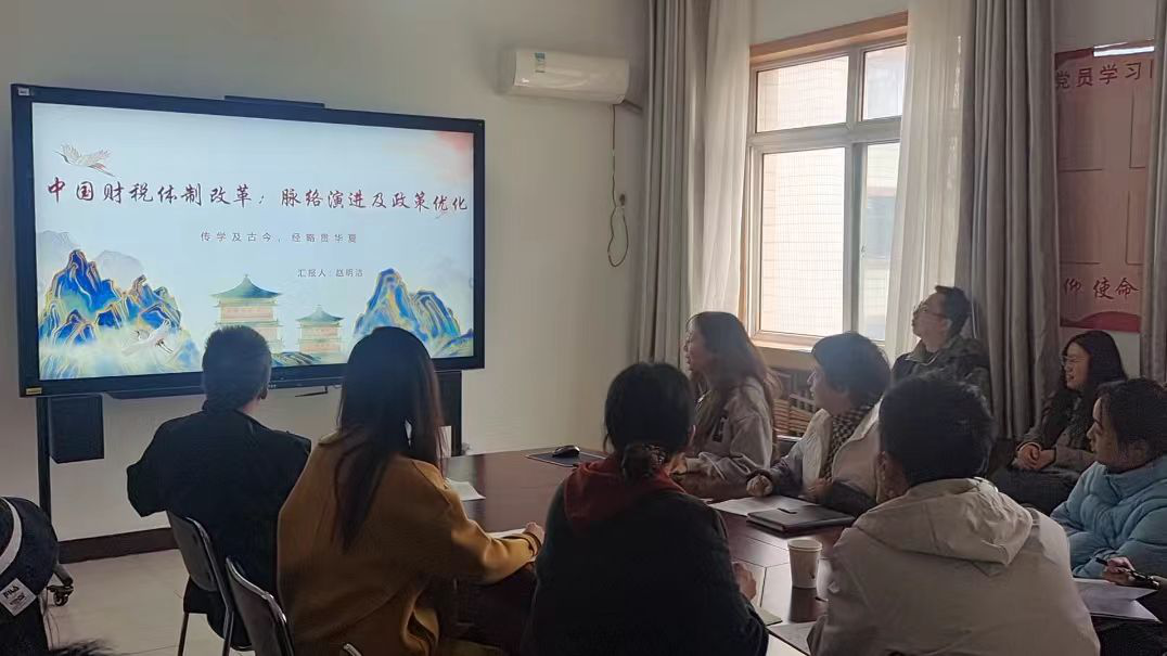 此次活动中,赵明洁老师分析了分税制改革以来我财税体制改革的内容及要点,即1978-1993年分税制改革动因:财政包干制度与央地财政平衡关系相违背、1994-1998年分税制改革伊始:“两个比重”提高与财税改革创新之路相契合、1998—2012年分税制改革推进:公共财政体制构建与市场经济发展相适应、2024-分税制改革纵深发展:新一轮财税体制改革与新质生产力,得出“我国财税体制改革是紧跟国家经济发展方向的改革”这一结论。最后,赵明洁老师根据二十大报告和二十届三中全会的新要求提出新一轮财税体制改革的要点。