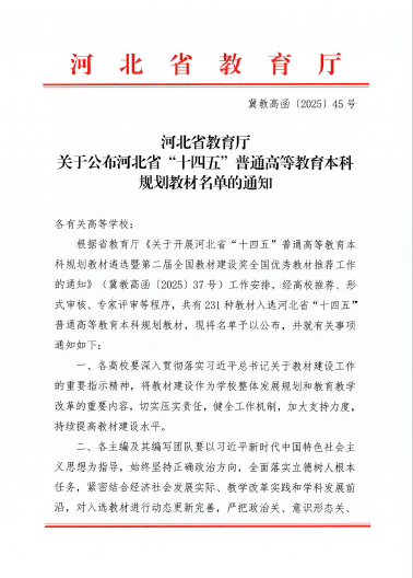 近日,河北省教育厅公布了《关于公布河北省“十四五”普通高等教育本科规划教材名单的通知》(冀教高函〔2025〕45号)。公司推荐的《中国税制》(第2版)教材入选河北省“十四五”普通高等教育本科规划教材,是《中国税制》教学团队继获评省级优秀教学团队后,斩获的又一省级教学成果。