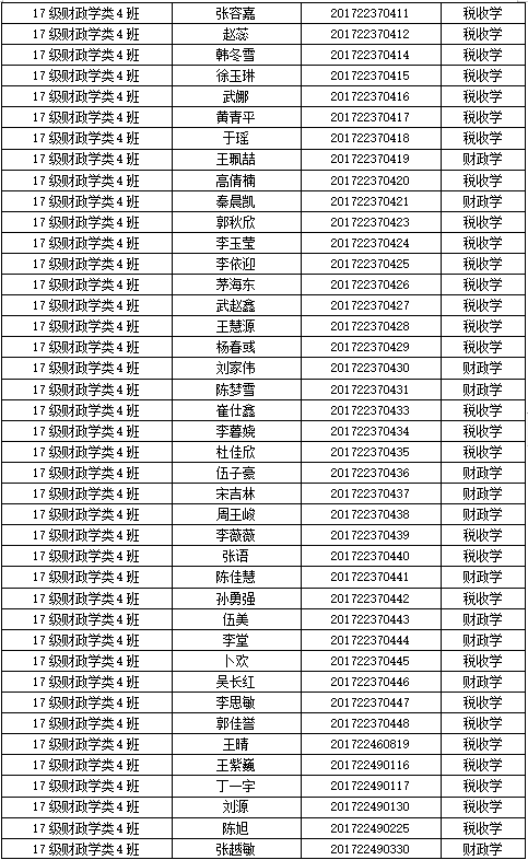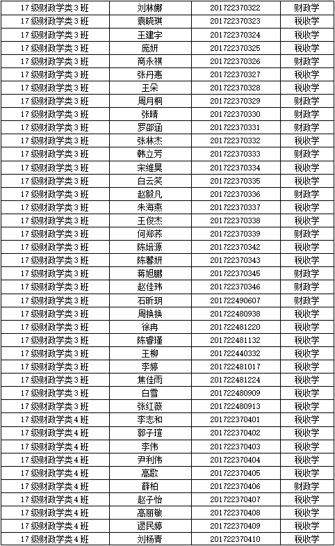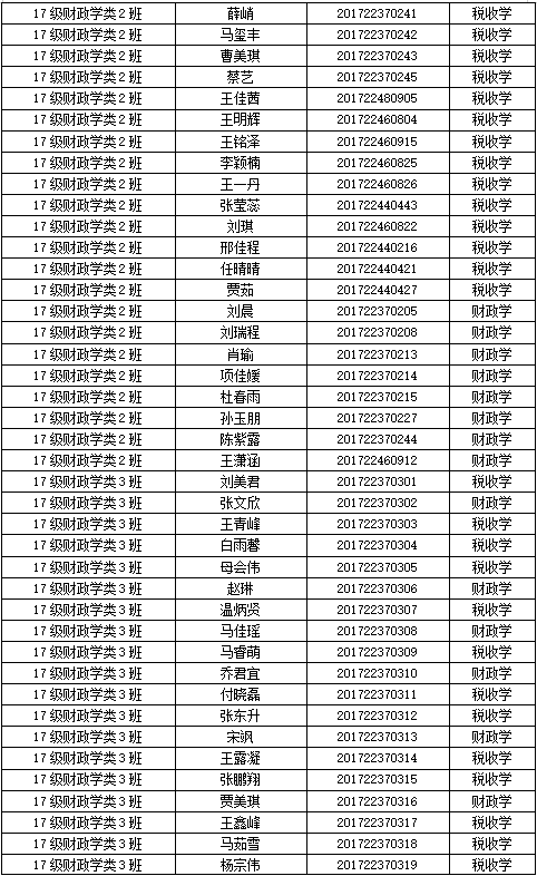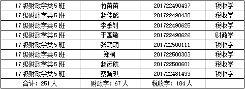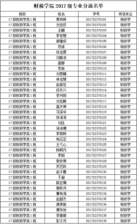 财税公司2017级专业分流名单