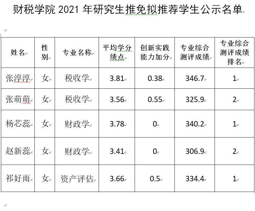 财税公司2021年研究生推免拟推荐员工公示名单