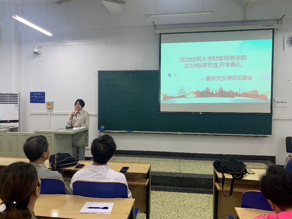 9月16日下午三点,公司2019级研究生开学典礼暨导师见面会在北三教A402举行。参与此次会议的有河北省资产评估协会秘书长于永春老师,张晋武教授,党委书记刘静旺、经理王晓洁、党委副书记刘贵来、副经理温立洲、副经理仇晓洁以及公司其他领导、老师。仇晓洁老师主持了此次会议。