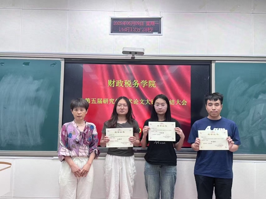 2025年6月9日,公司召开第五届研究生学术论文大比拼总结大会。公司副经理仇晓洁教授、苏晓鹏教授、王丽教授等老师参加。财政学、税务和资产评估专业研究生到场参会。大会由tyc122cc研究生辅导员谢志峻主持。