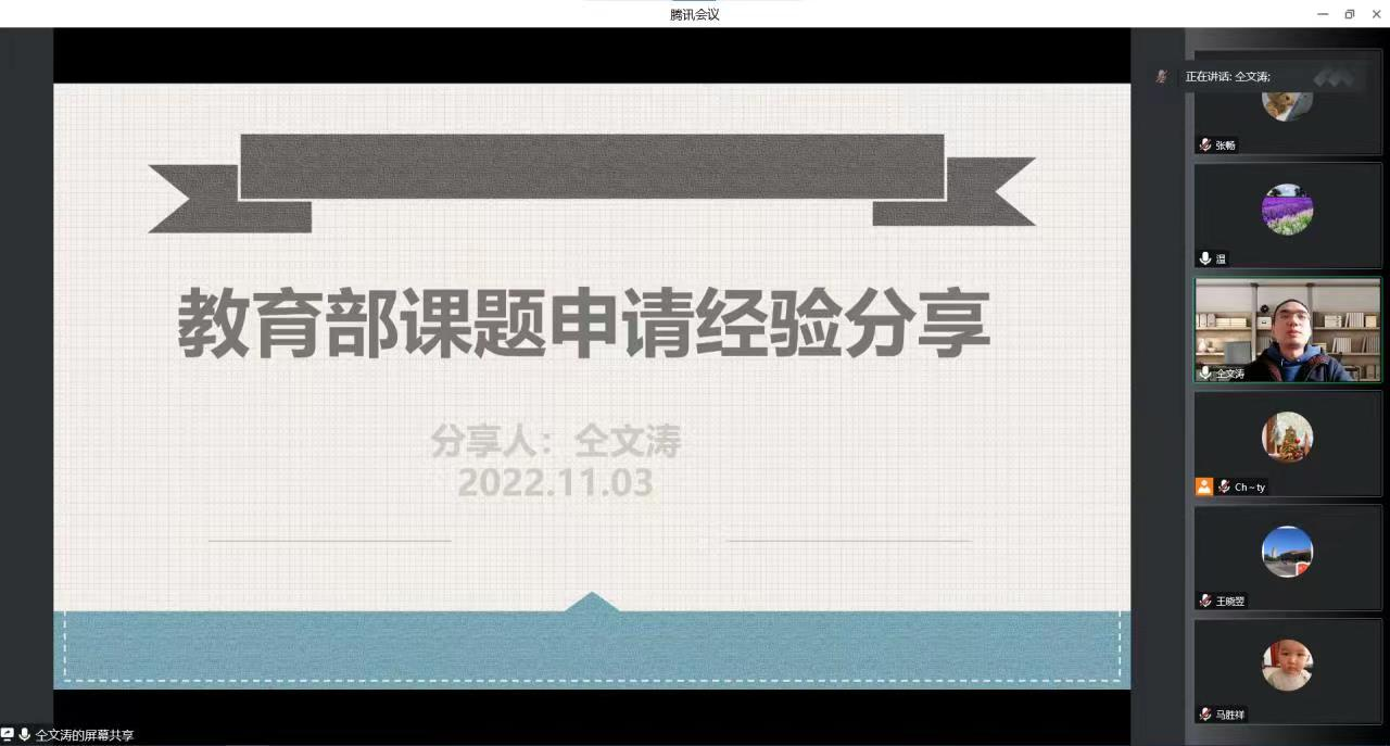 11月03日下午,tyc122cc利用腾讯会议举办了以“教育部课题申报经验分享”为主题的双周论坛暨教学沙龙活动。本次沙龙活动由温立洲副经理主持,仝文涛老师主讲,郝江华书记、王晓洁经理以及财税公司全体教师以及其他公司部分教师参加了此次活动。