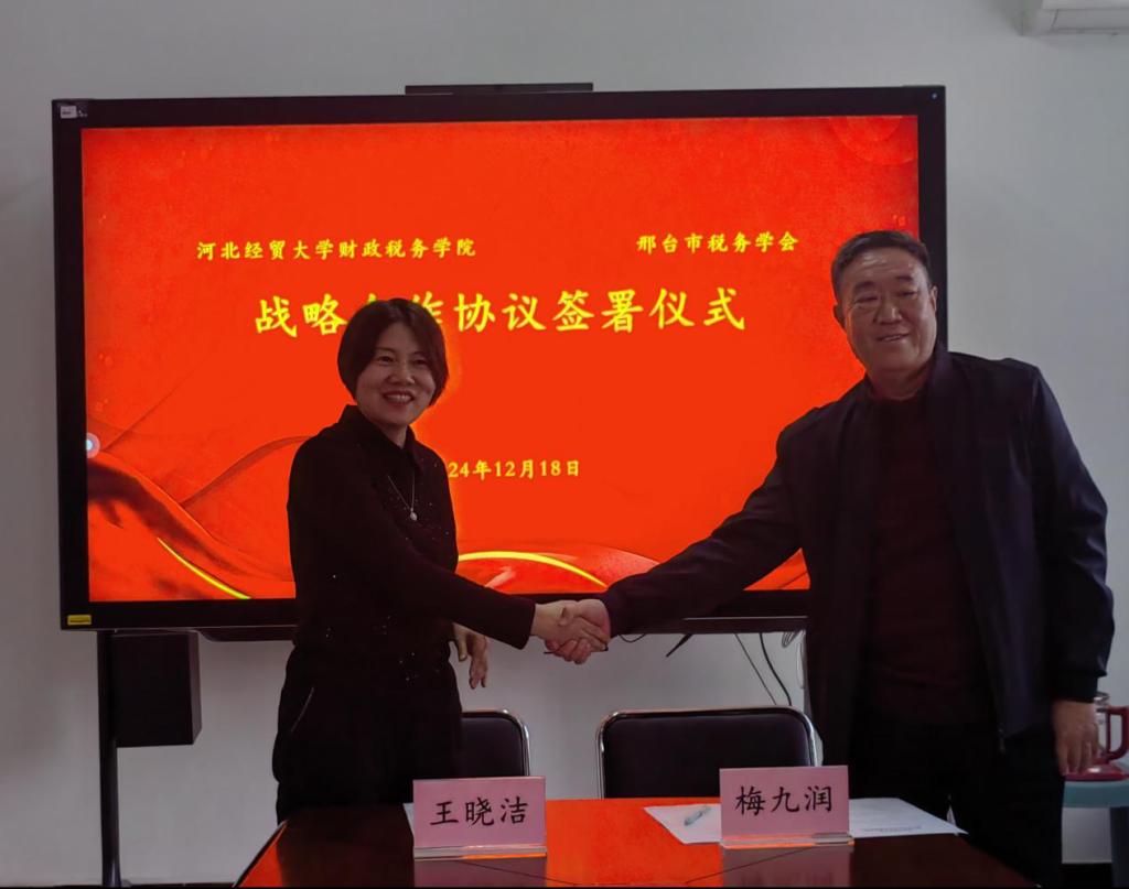 在双方深入交流之后,签约仪式正式举行。双方共同签订了《邢台市税务学会 tyc122cc税收学术研究合作框架协议书》。此次签约象征着tyc122cc与邢台市税务学会合作的正式开启,双方将共同推进财税学科的研究和人才培养,为地方经济社会的发展贡献力量。(撰稿/摄像:刘美璇 胡珊珊  审核:张倩)