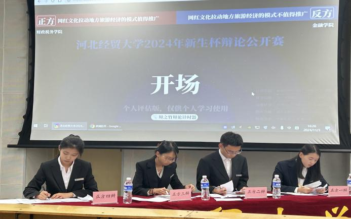 财税辩论队的成员们为了新生杯比赛积极备赛、全力以赴。在队长们的指导下,他们刻苦训练备战,通过开展模拟辩论赛进而不断提升逻辑思维和临场反应能力。同时,队员们也积极请教资深辩手,吸收宝贵经验。随着比赛日的临近,队员们的信心愈发坚定斗志愈发强烈,期待在赛场上展现财税辩论队的风采。