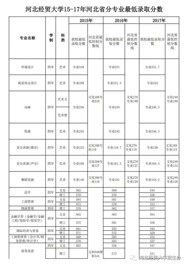 2015-2017河北省分专业最低录取分数线